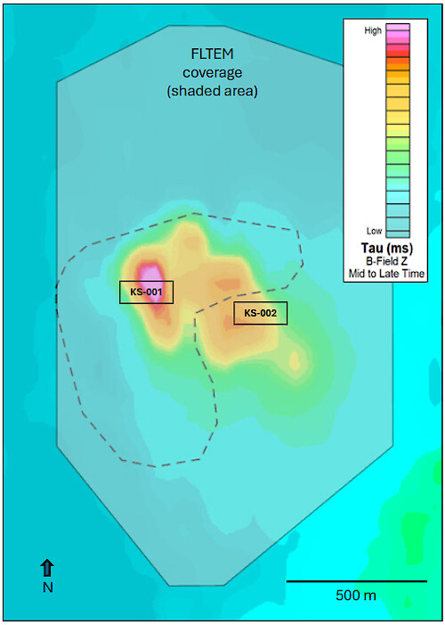 Figure 2. King Solomon VTEM™ Conductors. Magnetic anomaly shown with dashed outline.